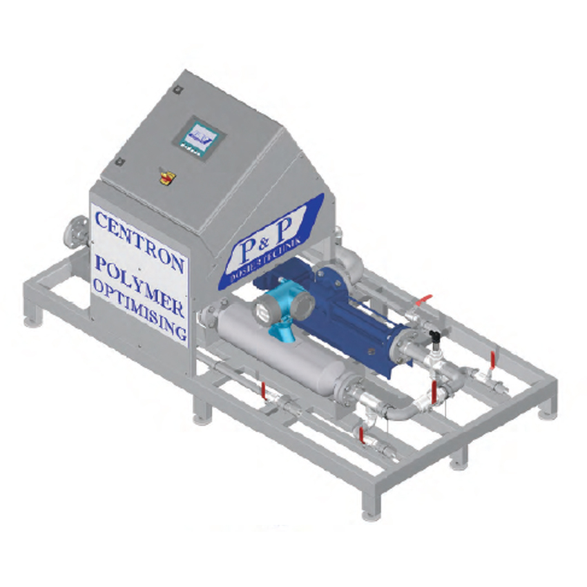 Vollautomatische Messung der Feststoffkonzentration im Schlammzulauf, mit exakter und frachtabhängiger Dosierung der Polymerlösung in kg/t/TS.